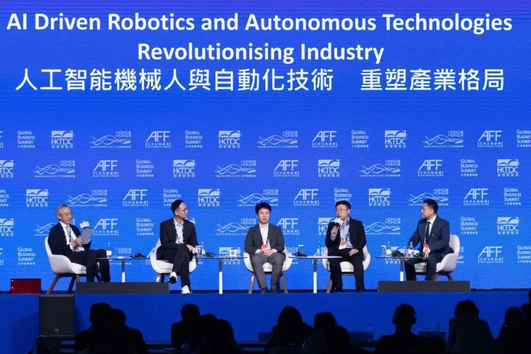▲银河通用机器人联合创始人姚腾洲(右二)在全球产业峰会专题讨论环节中分享人工智能驱动的机械人技术如何重塑行业发展。